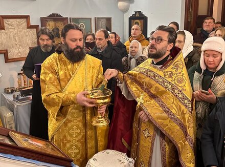 Освящение и Божественную литургию совершил викарий Санкт-Петербургской епархии епископ Выборгский Назарий. Ему сослужили благочинный Петроградского округа протоиерей Виктор Московский, клирики петербургских храмов и гость из Кении православный священник Филипп Гатари.