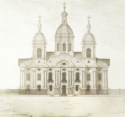 Фасад Никольского собора, чертеж Гр. Макарова. 1780-е годы