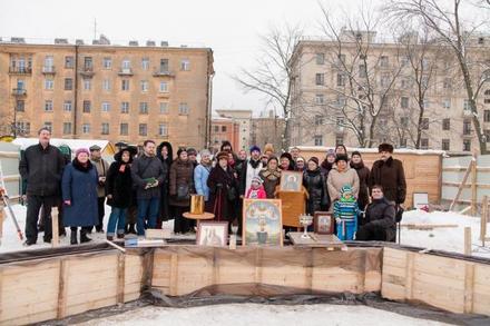 27 января 2015 года, в день полного снятия блокады Ленинграда в 1944 году, и в день равноап. Нины, в Ломоносовском сквере был заложен временный храм-часовня в честь Преображения Господня, и отслужен Молебен на основание храма.