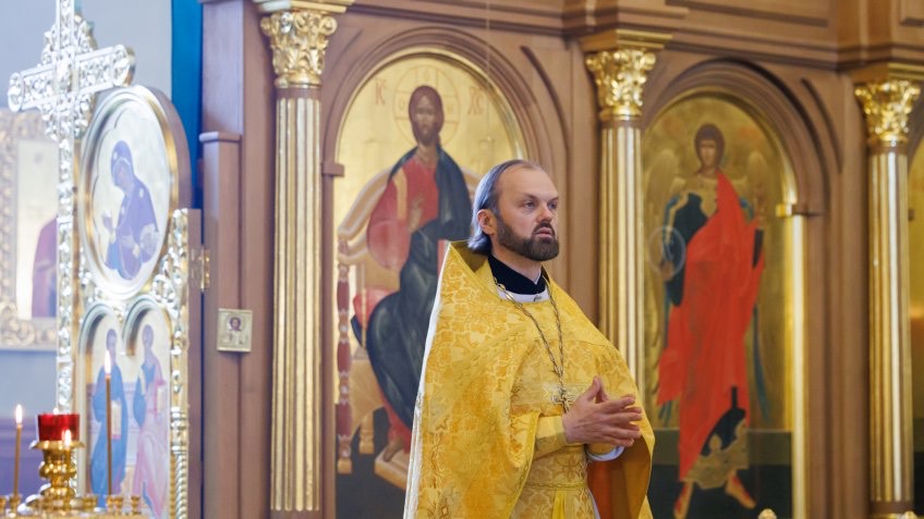 Князь-Владимирского собора иерей Илия Макаров в сослужении духовенства.