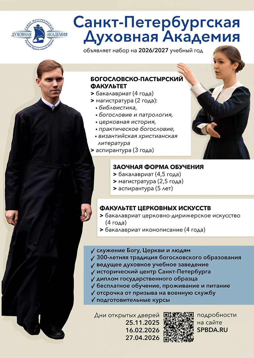 Санкт-Петербургской духовной академии состоится 25 ноября в актовом зале.