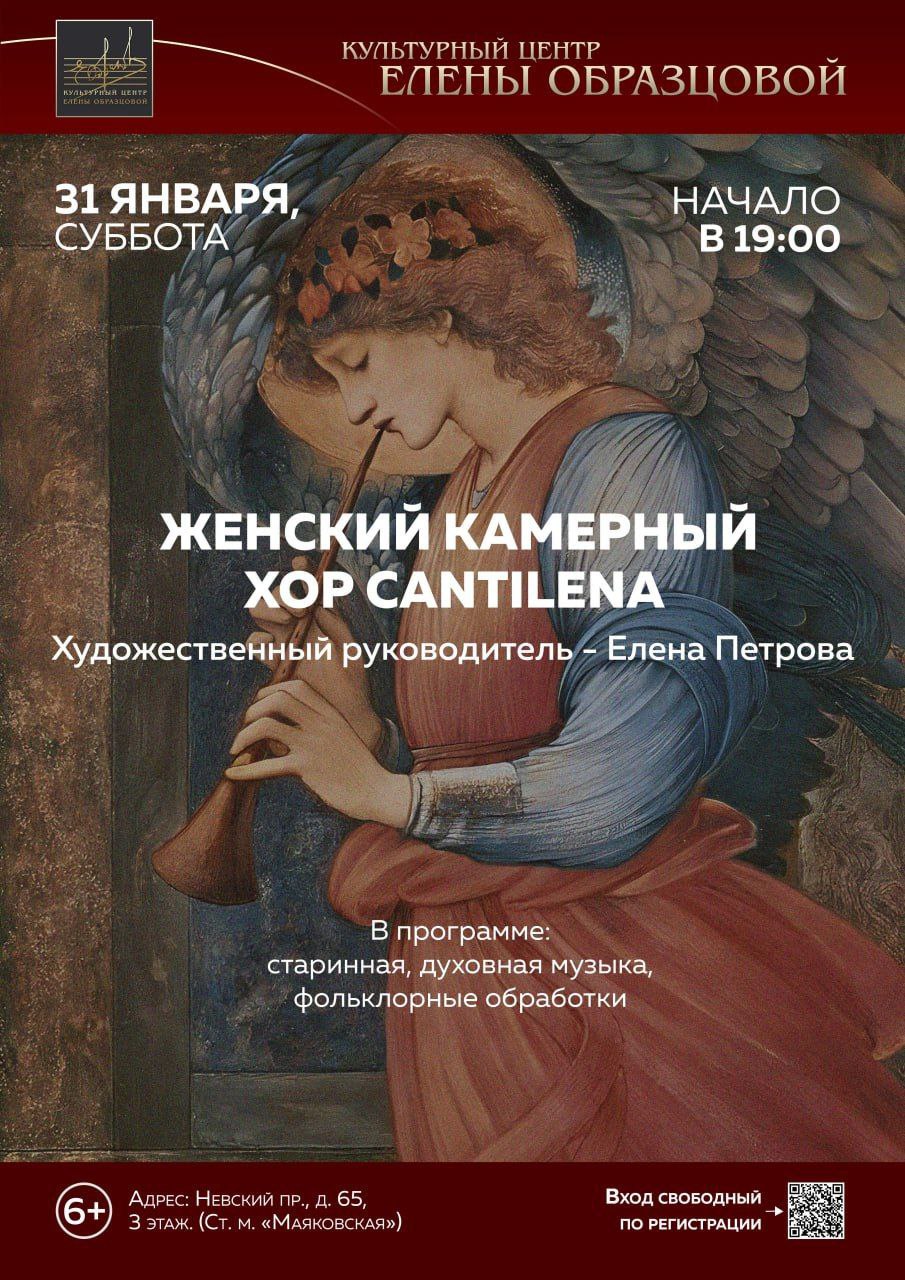 Концерт женского камерного хора "Cantilena" под руководством Елены Петровой состоится 31 января в Культурном центре Елены Образцовой.