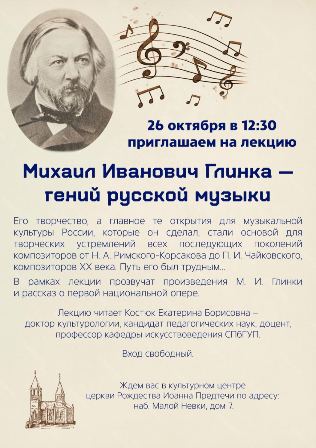 26 октября Воскресенье - Лекция о Михаиле Глинке
