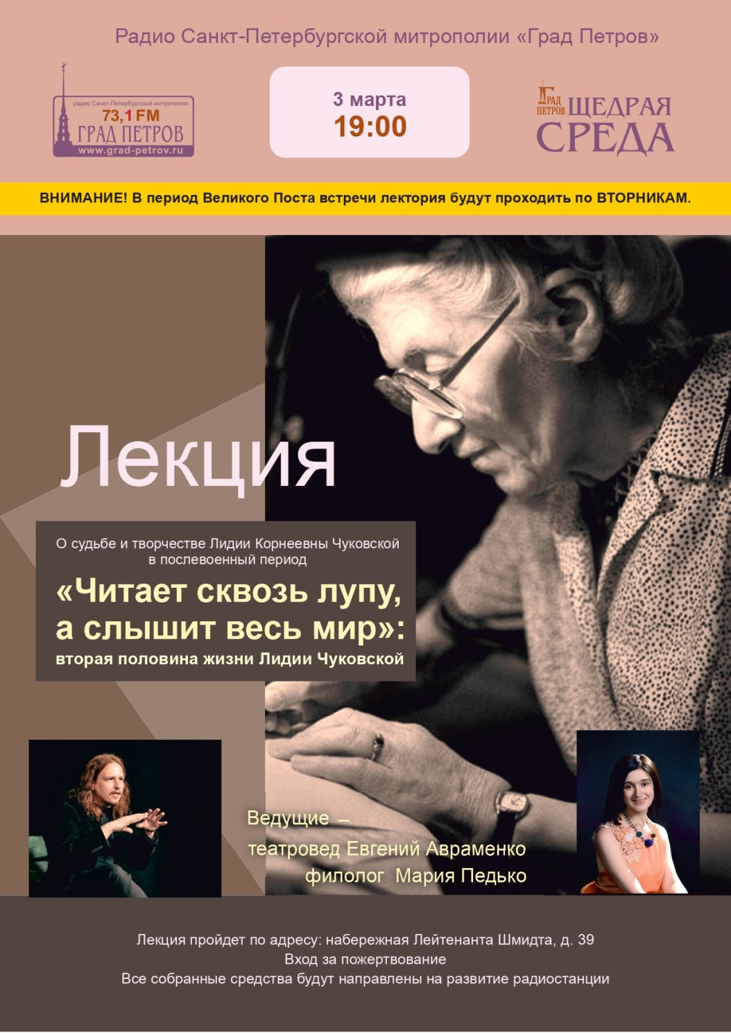 О судьбе Лидии Корнеевны после войны расскажут филолог Мария Педько и театровед Евгений Авраменко.