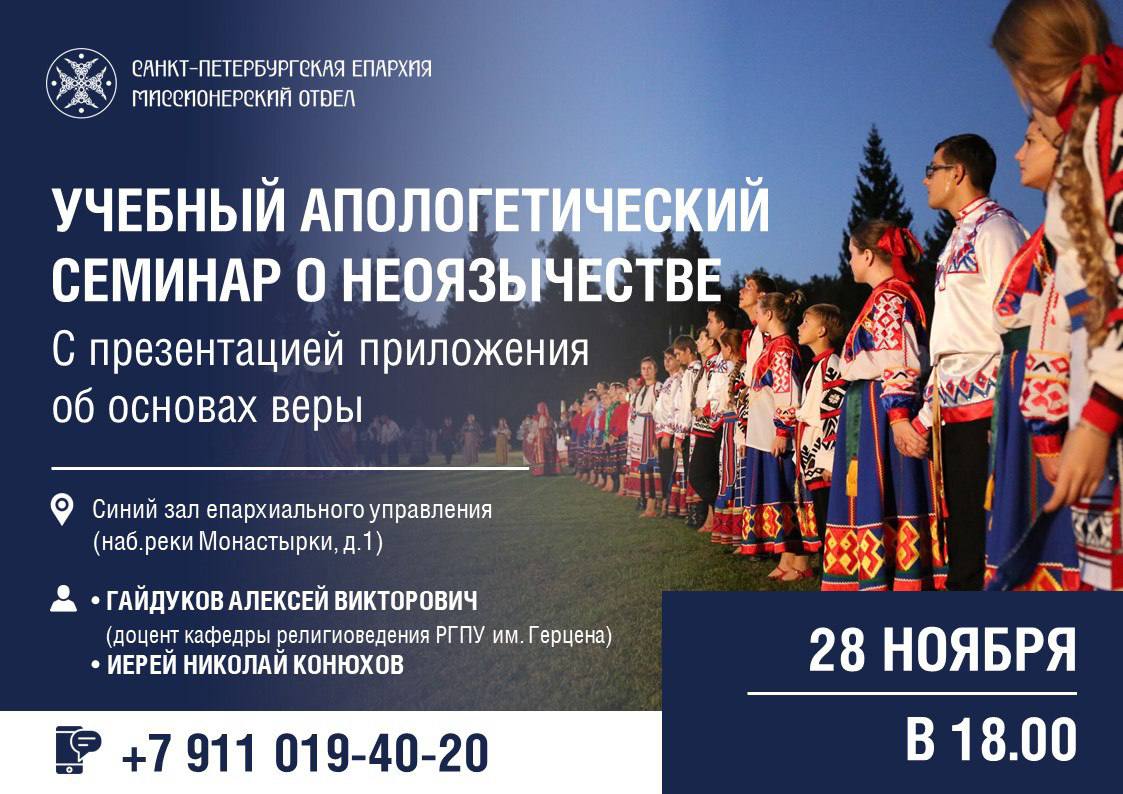 Учебный апологетический семинар о неоязычестве состоится 28 ноября в Синем зале