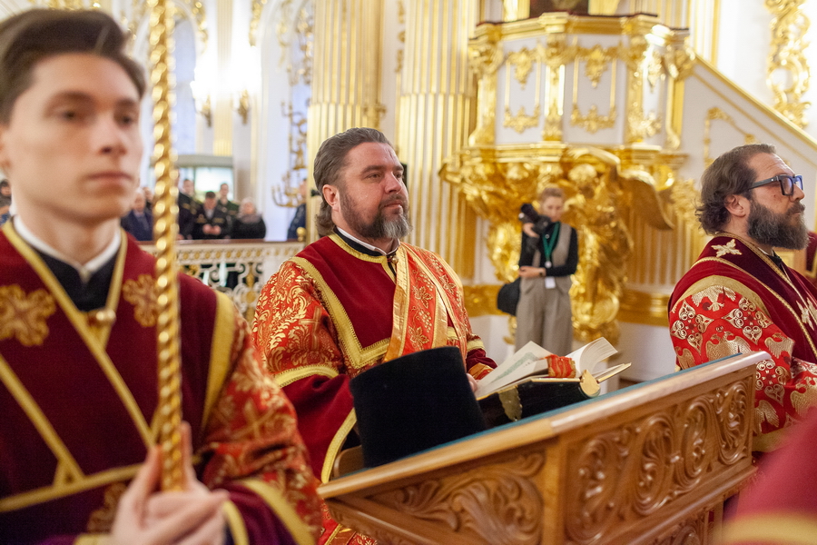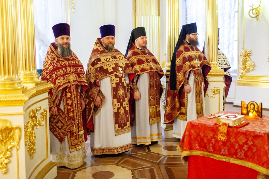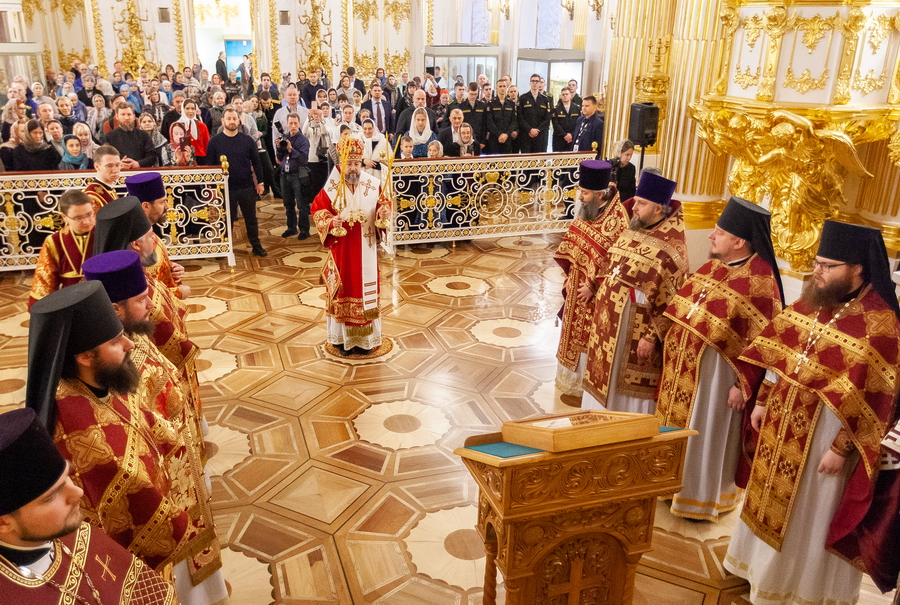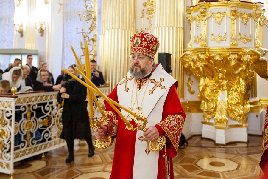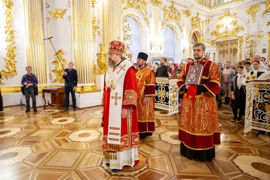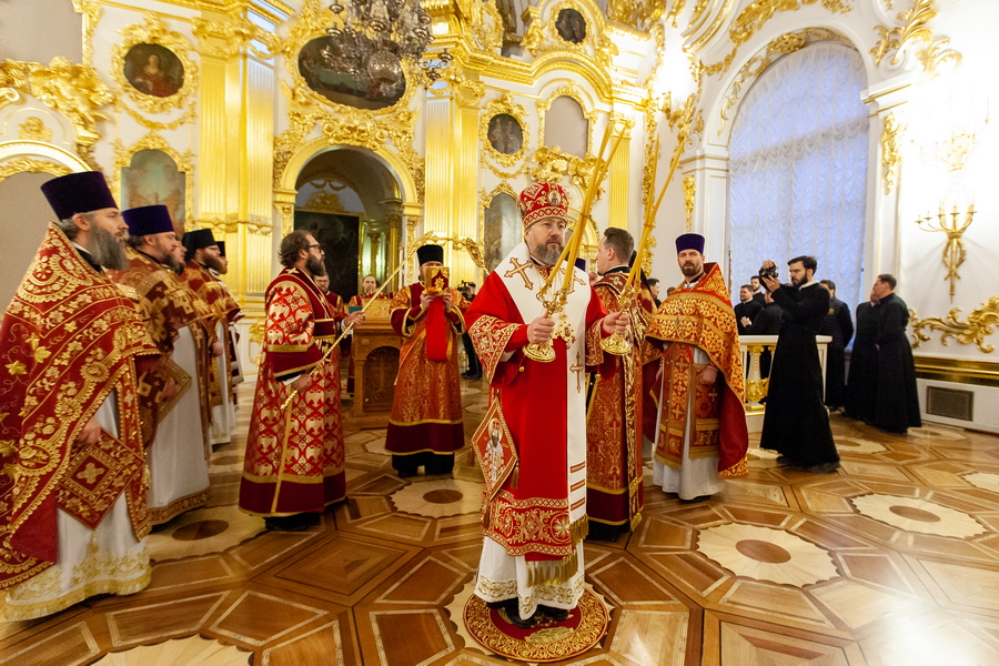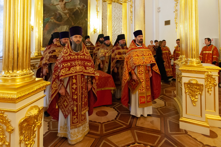 Епископ Кронштадтский Вениамин совершил Божественную литургию в храме Спаса Нерукотворного Зимнего дворца