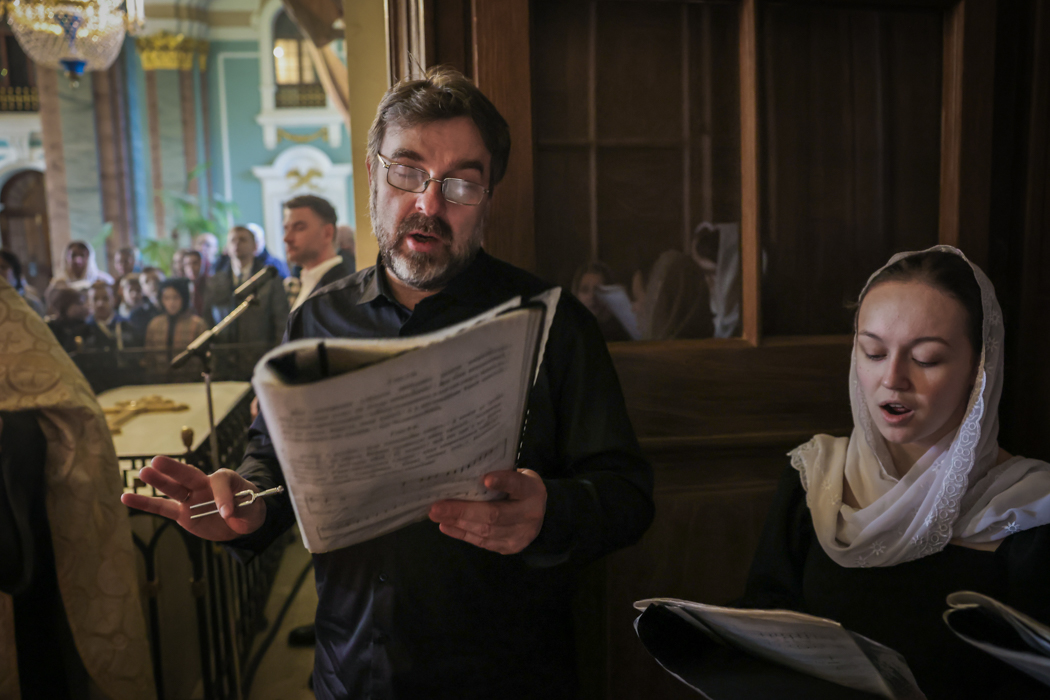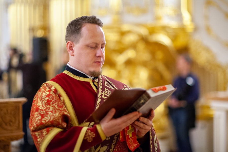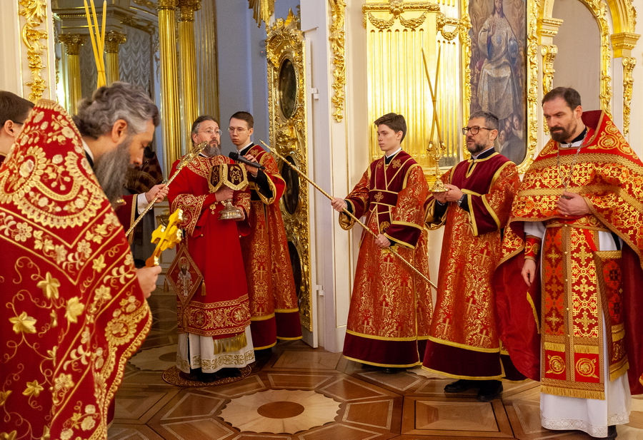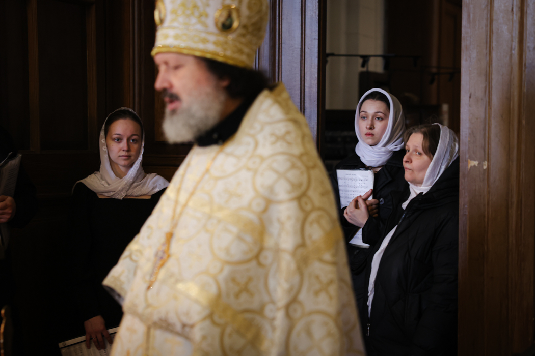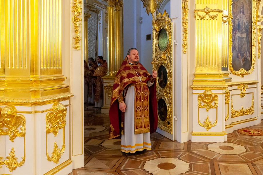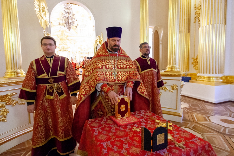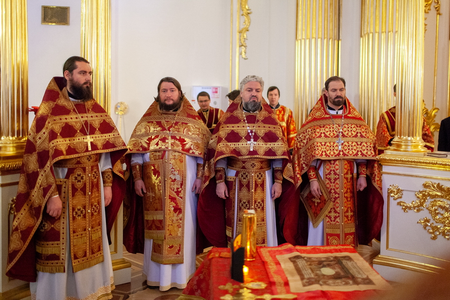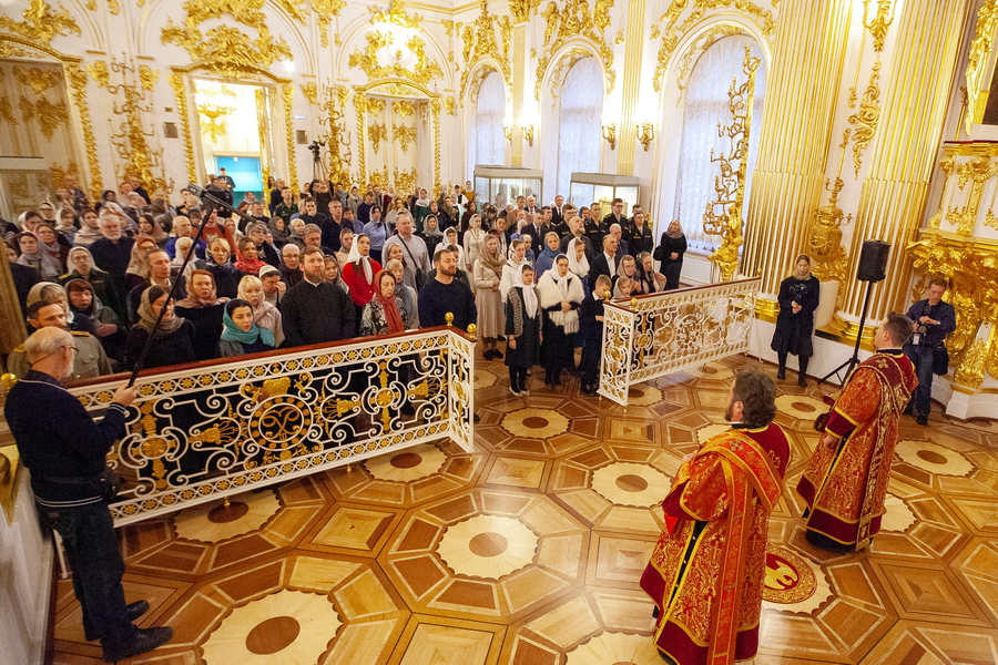 Божественная литургия в храме Спаса Нерукотворного при Эрмитаже